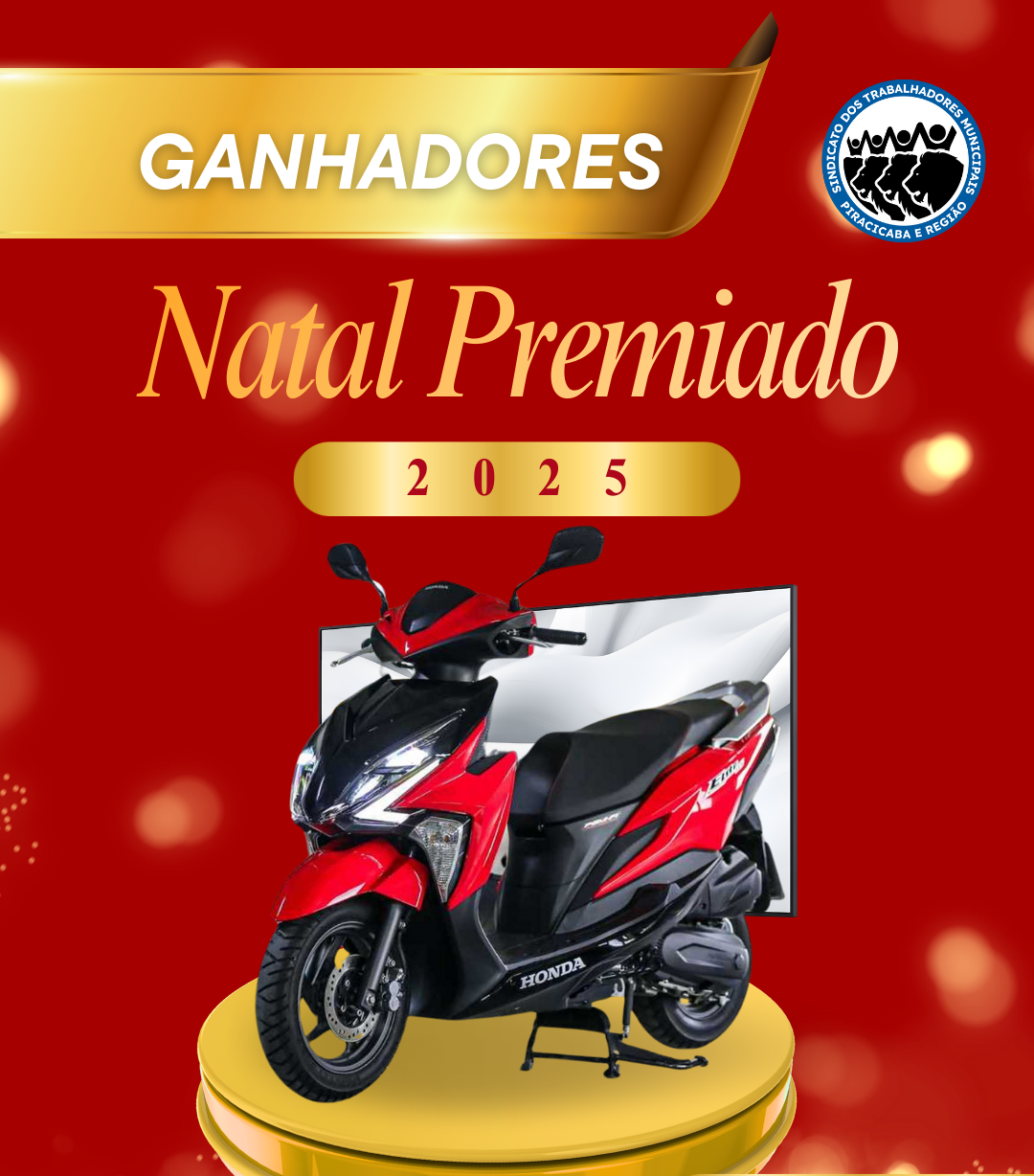Nesta segunda-feira (26), a diretoria do Sindicato dos Municipais de Piracicaba e Região realizou a entrega dos prêmios aos associados contemplados pela Loteria Federal de Natal de 2025. Ao todo, foram entregues uma moto 0 km e quatro televisores, em um momento marcado por alegria e gratidão entre os presentes.
